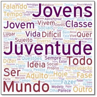 Juliana: E eu acho que o caminho, em todos esses casos, é, de novo, a valorização da voz da juventude. Então estamos, duas adultas, falando sobre as juventudes. E eu digo que é porque a gente ocupa um papel que eles não podem ocupar. Um jovem de 18, de 20 anos ainda não pode estar num ambiente acadêmico fazendo a leitura da sua investigação a partir de uma formação doutoral. É um campo que está restrito por outras questões. A gente tem essa preocupação sempre em trazê-los em eventos acadêmicos, trazer essa participação de outras formas. Mas a gente também tem um papel dentro desse campo, em também ser esse representante no espaço que a gente ocupa. Eu acho que é uma ação importante porque eles não podem estar, nessas configurações do campo, todo o tempo presentes. E a gente não fala por eles, mas os escuta e, com a nossa trajetória acadêmica, a gente interpreta, a gente acrescenta outras camadas, mas sem falar da juventude e não escutá-la. Falando da juventude a partir do que eles próprios dizem sobre si, e também das representações sobre a mídia, que sempre nos preocupa.